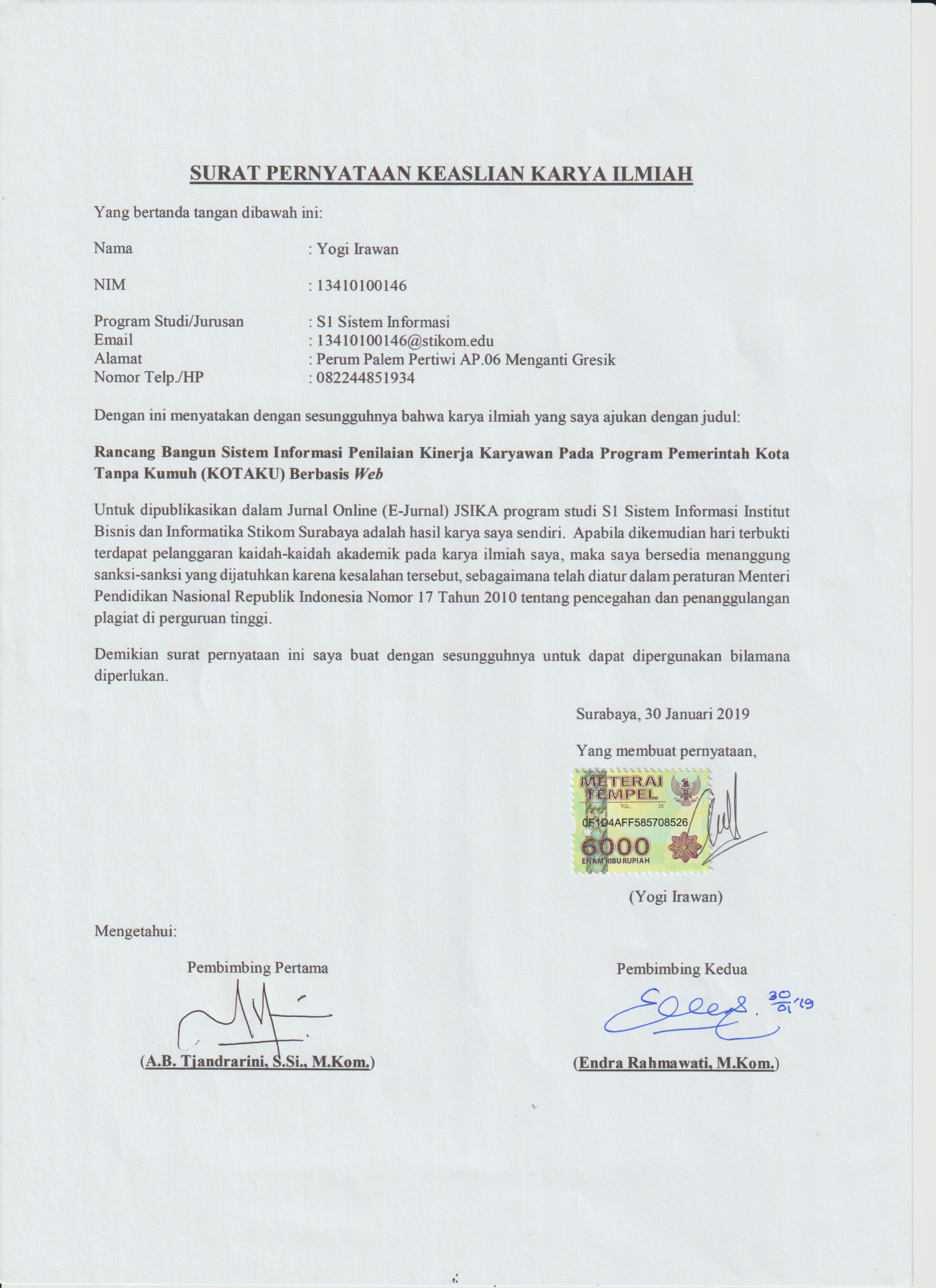 Rancang Bangun Sistem Informasi Penilaian Kienrja Karyawan Pada Program Pemerintah Kota Tanpa Kumuh (KOTAKU) Berbasis Web