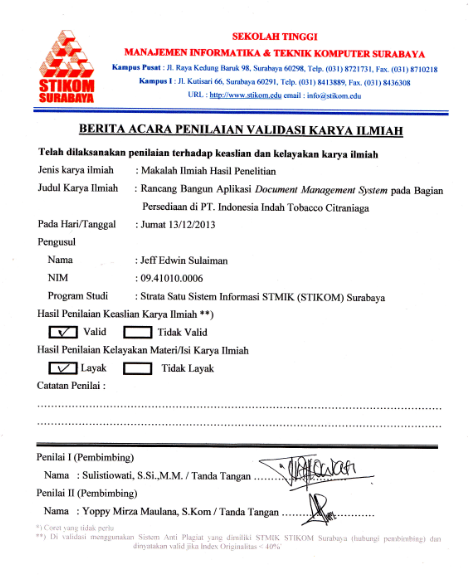 Rancang Bangun Aplikasi Document Management System pada Bagian Persediaan di PT. Indonesia Indah Tobacco Citraniaga