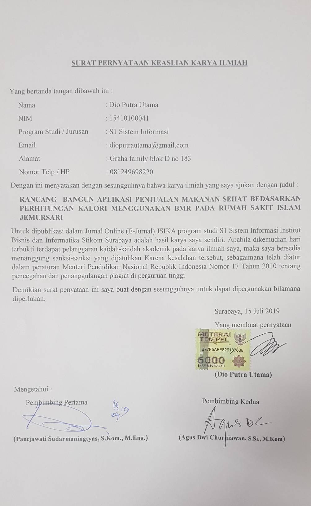RANCANG BANGUN APLIKASI PENJUALAN MAKANAN SEHAT BEDASARKAN PERHITUNGAN KALORI MENGGUNAKAN BMR PADA RUMAH SAKIT ISLAM JEMURSARI