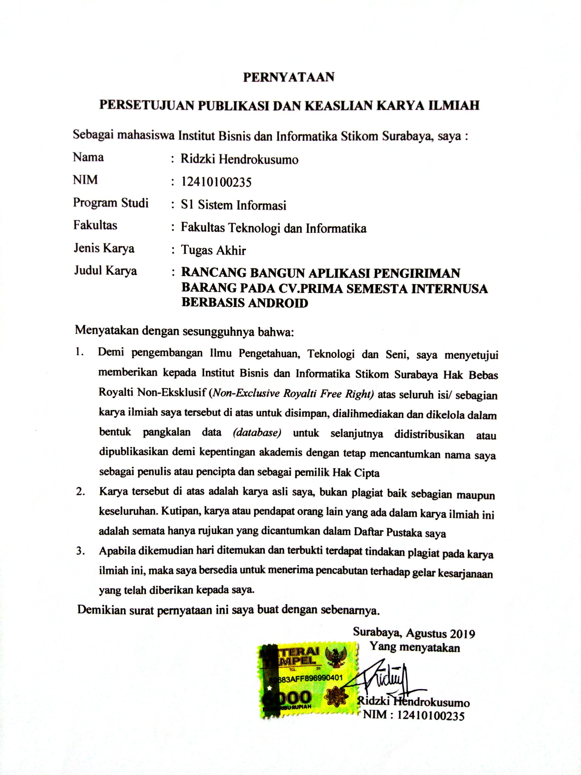 RANCANG BANGUN APLIKASI PENGIRIMAN BARANG PADA CV.PRIMA SEMESTA INTERNUSA BERBASIS ANDROID