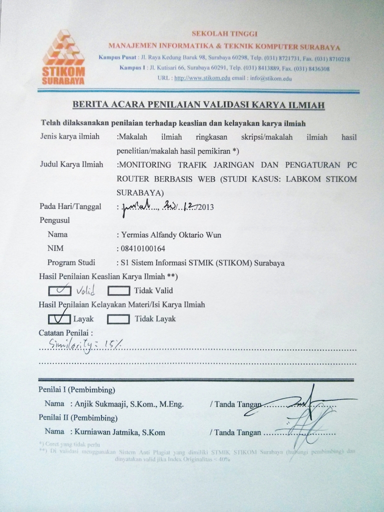 Monitoring Trafik Jaringan Dan Pengaturan Pc Router Berbasis Web (Studi Kasus: Labkom Stikom Surabaya)