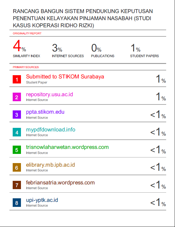 Rancang Bangun Sistem Pendukung Keputusan Penentuan Kelayakan Pinjaman Nasabah (Studi Kasus Koperasi Ridho Rizki)