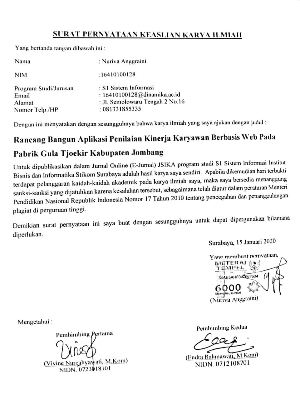 RANCANG BANGUN APLIKASI PENILAIAN KINERJA BERBASIS WEB PADA PABRIK GULA TJOEKIR KABUPATEN JOMBANG