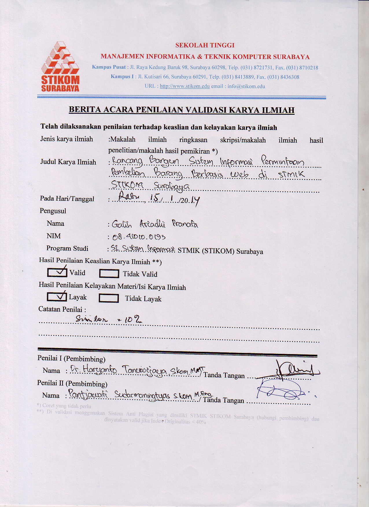 Rancang Bangun Sistem Informasi Permintaan Pembelian Barang Berbasis Web Di Stmik Stikom Surabaya