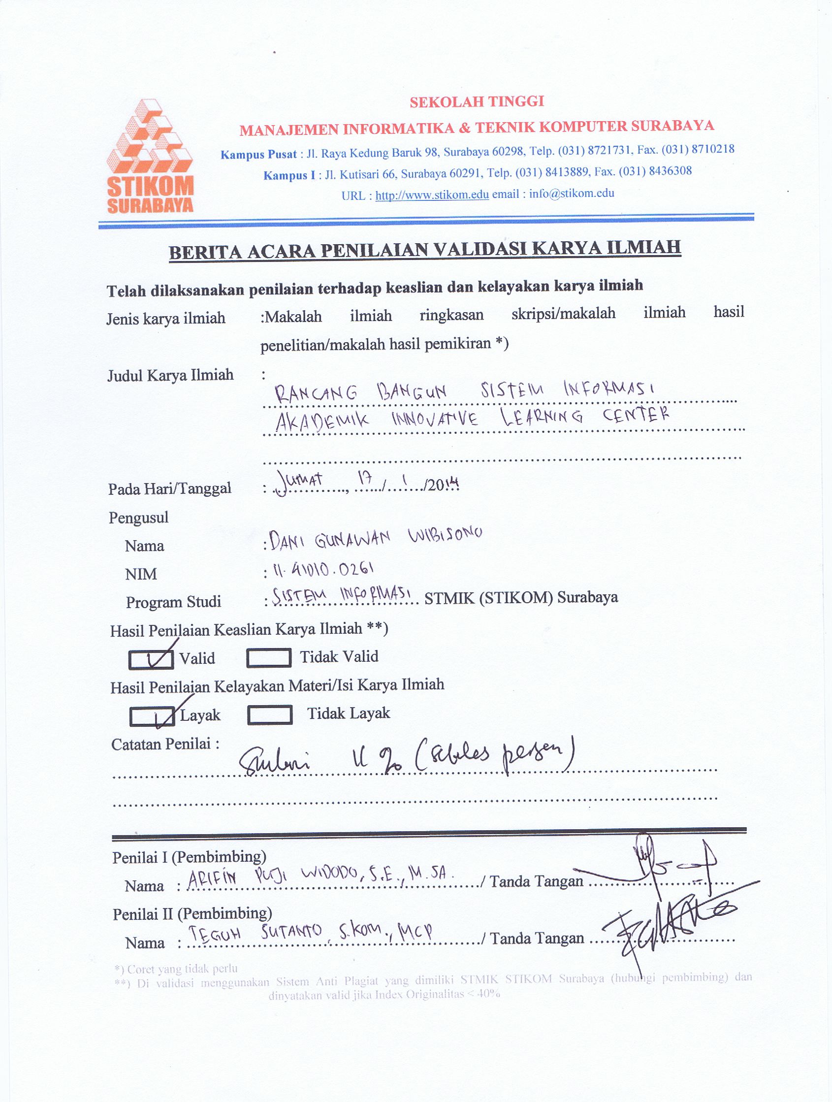Innovative Learning Center (ILC) is an English course that was founded in 2007 with a vision to improve the English language skills in aspects of learning such as listening, speaking, writing, reading and grammar as well as being the leading English language tutoring in Sidoarjo. In ILC, system that handle administrative processes is already exist using Excel but considered inadequate. There is a lack of useful reports for management for the purpose of measuring the performance of ILC within certain period. In addition to said problem, there are also other problem where the tutors are having insufficient information about the performance of their class. During the teaching session, the tutors teach without knowing each student’s progress. The result is that students who have poor grades can’t be known early. Other problems also arise from the students and parents caused by lack of communication between the ILC with parents. As a result, parents are often misinformed about the development of their academic activities. Therefore, to resolve these problems, there is a need to build an Academic Information System that manage information of students, academic information and financial information. The Academic Information System must be capable of producing useful reports about ILC's performance and financial information for the owner. The System must also capable of providing class academic information for tutors and student academic information to parents or students. Academic Information Systems can provide the information needed by the owner, tutors and students.