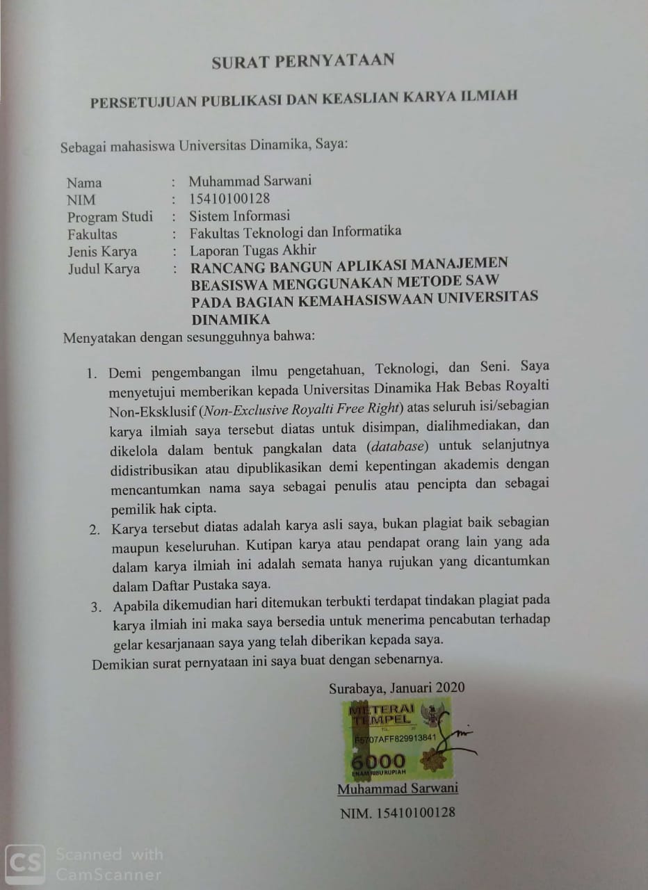Rancang Bangun Aplikasi Manajemen Beasiswa Menggunakan Metode SAW Pada Bagian Kemahasiswaan Universitas Dinamika