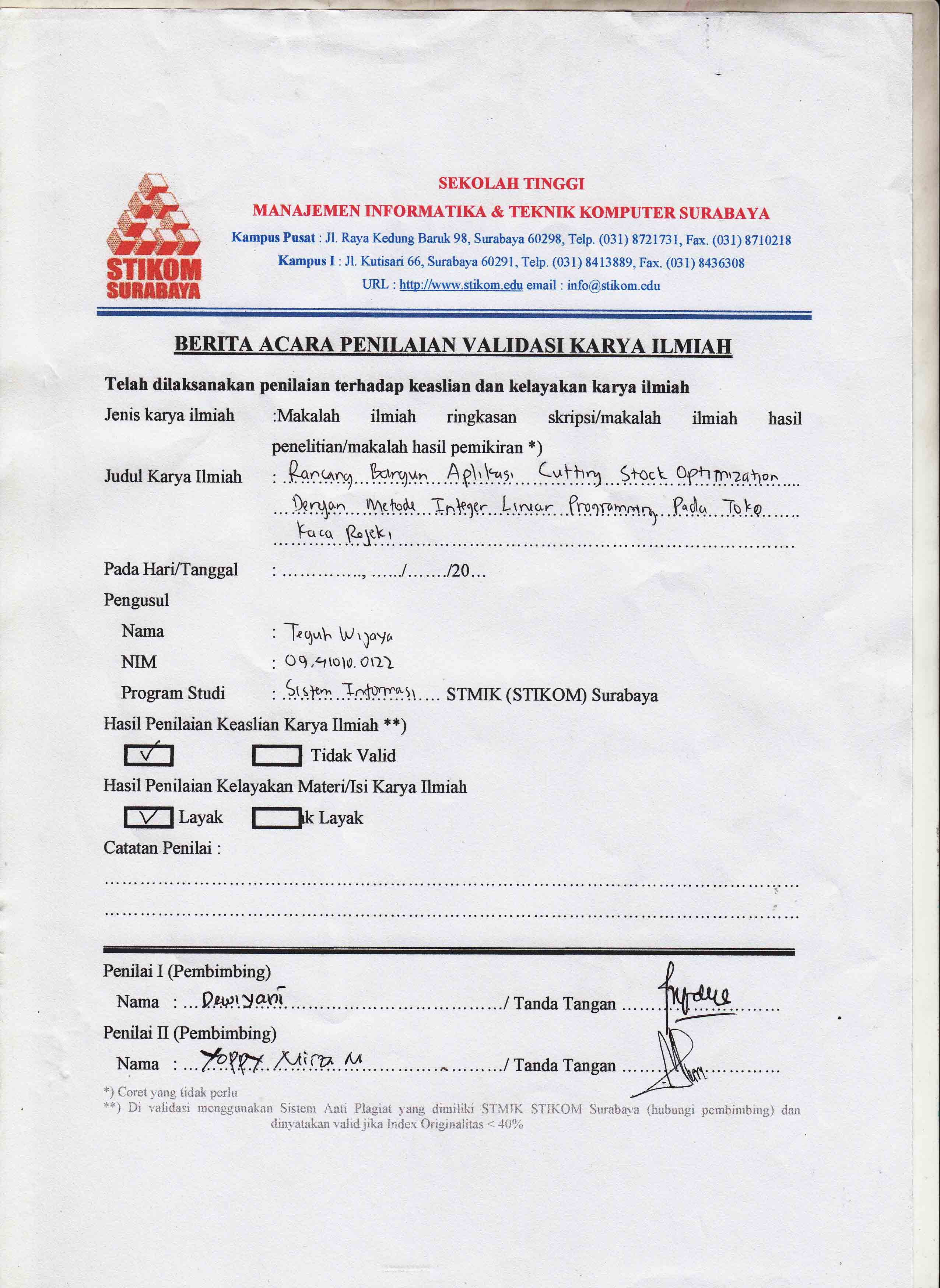 Design Applications Cutting Stock Optimization Methods Integer Linear Programming In Rejeki Glass Shop, is expected to improve the cutting process becomes more effective and efficient . Effective question is about maximizing the broad field of glass , so it can be used optimally. Efficient question is the reduction in material costs that arise from the rest of the glass is wasted