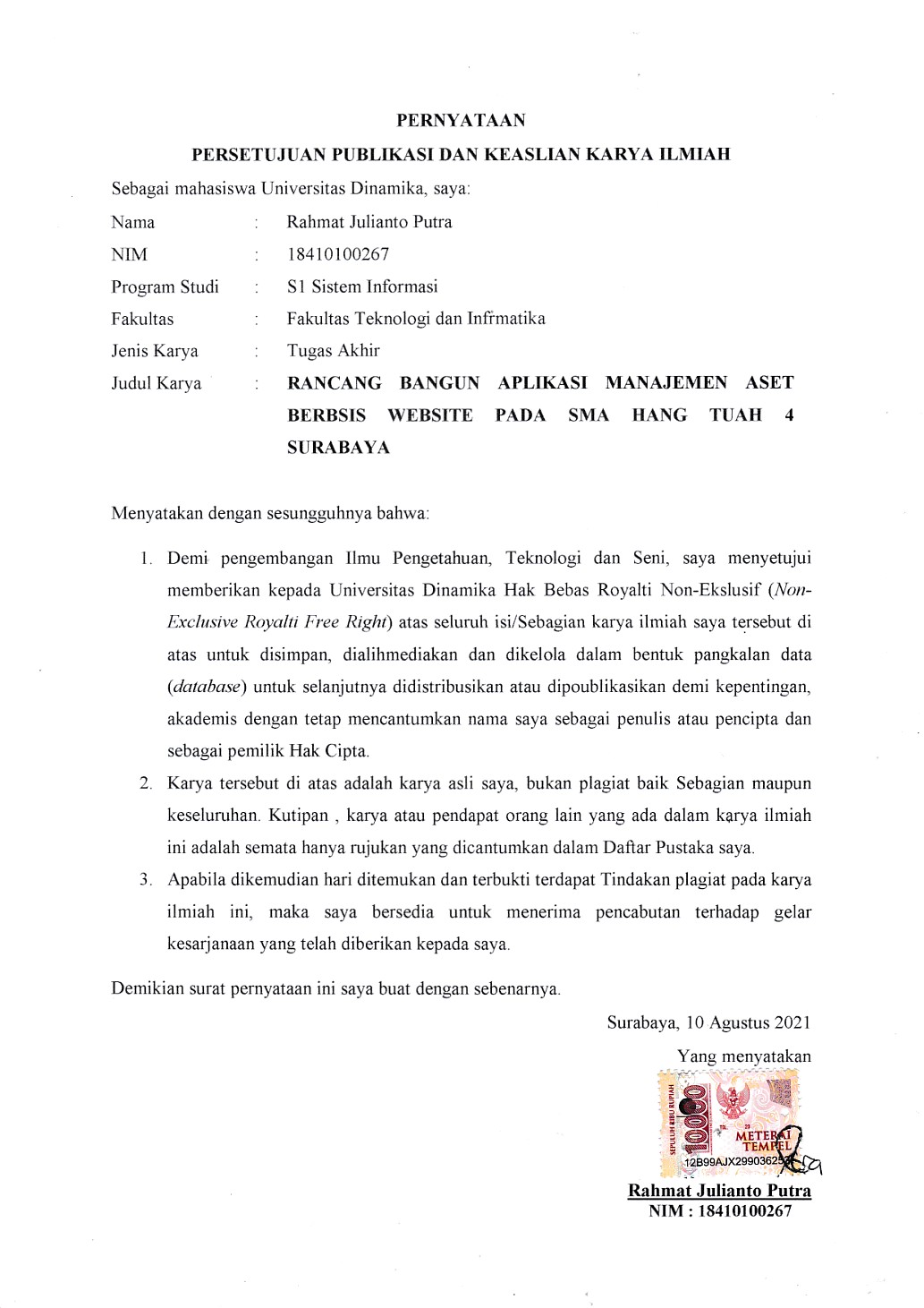 RANCANG BANGUN APLIKASI MANAJEMEN ASET BERBASIS WEBSITE PADA SMA HANG TUAH 4 SURABAYA