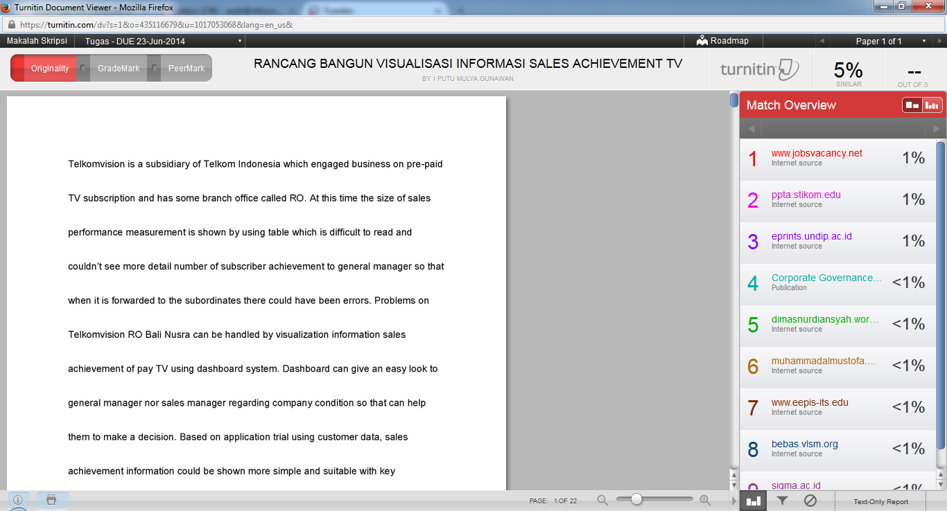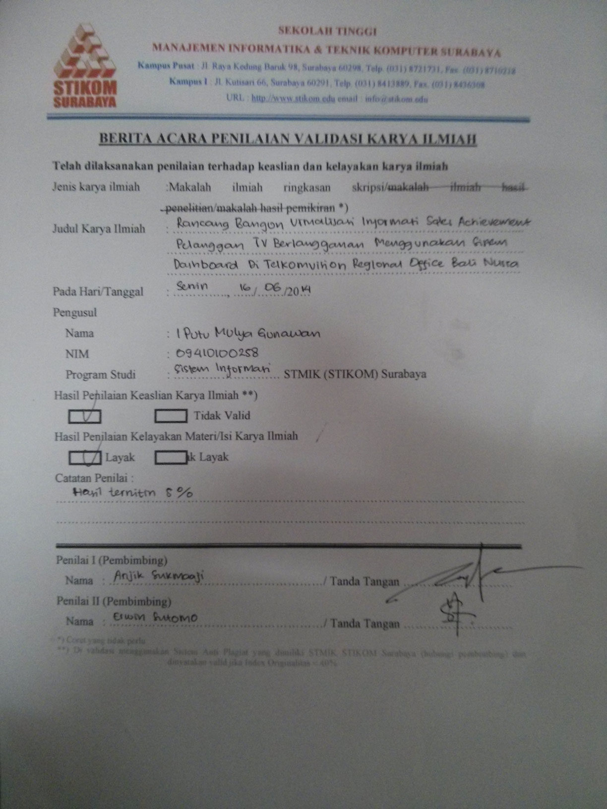 Rancang Bangun Visualisasi Informasi Sales Achievement TV Berlangganan Menggunakan Sistem Dashboard Di Telkomvision Regional Office Bali Nusra