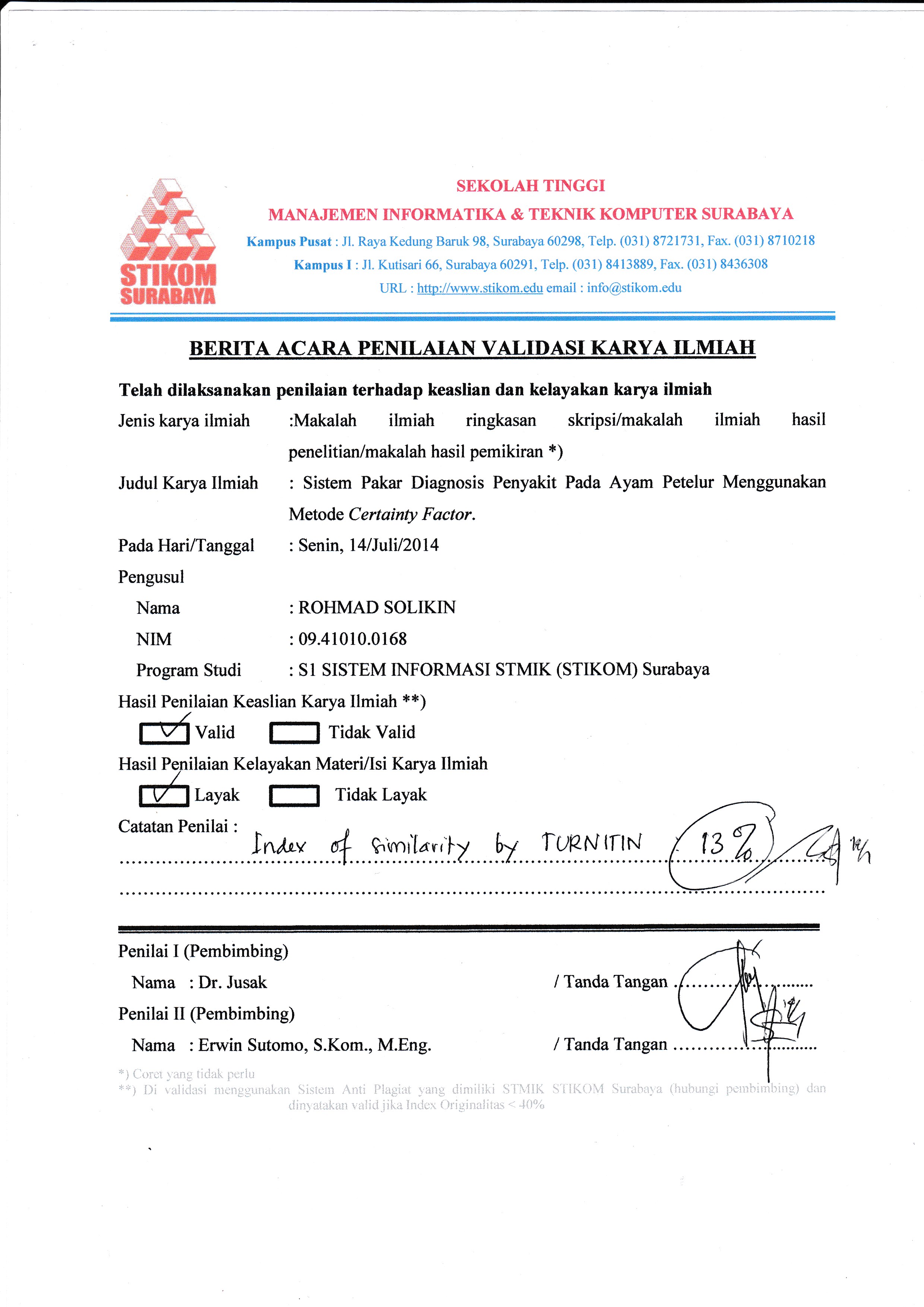 Sistem Pakar Diagnosis Penyakit Pada Ayam Petelur Menggunakan Metode Certainty Factor
