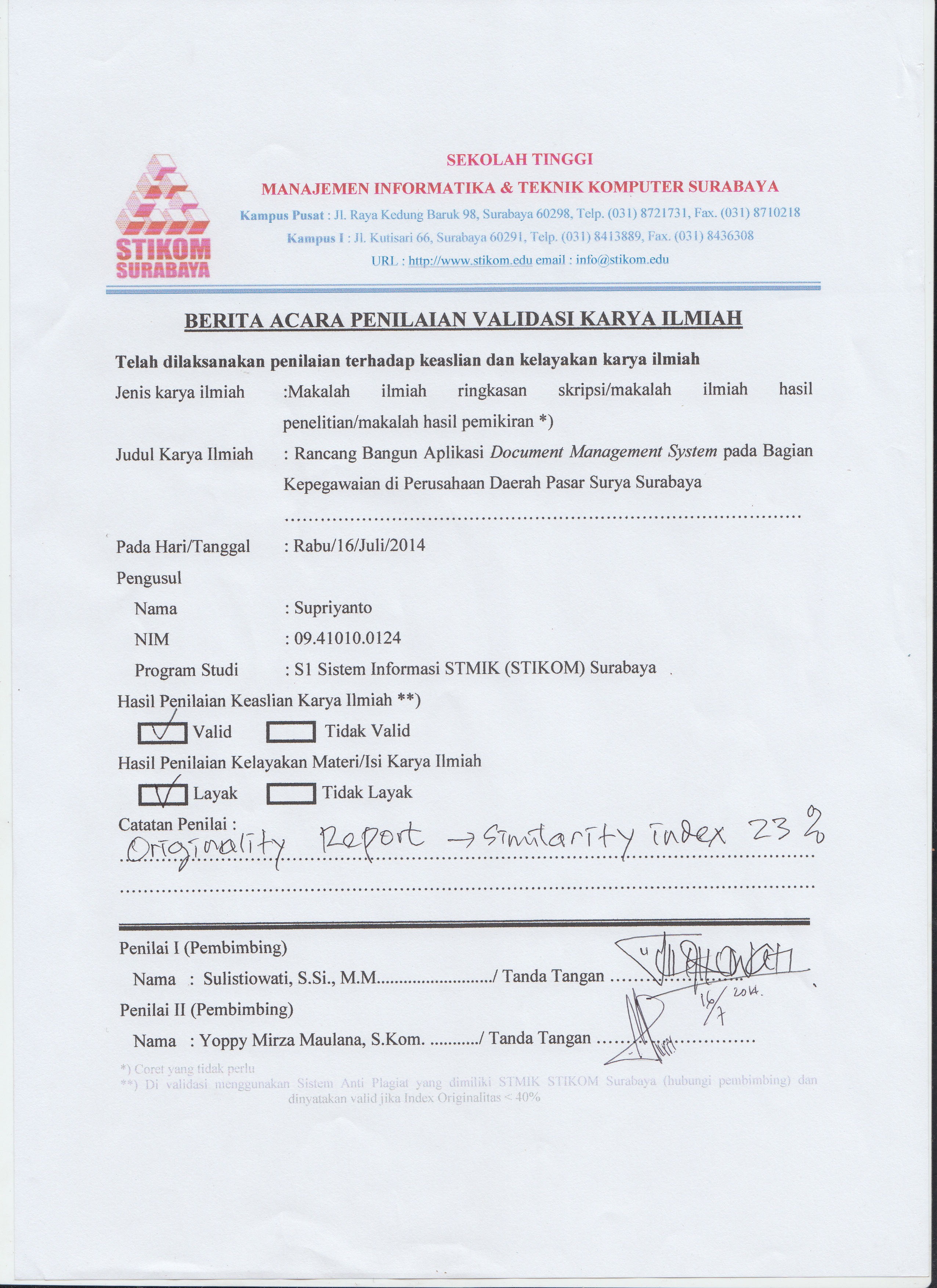RANCANG BANGUN APLIKASI DOCUMENT MANAGEMENT SYSTEM PADA BAGIAN KEPEGAWAIAN DI PERUSAHAAN DAERAH PASAR SURYA SURABAYA