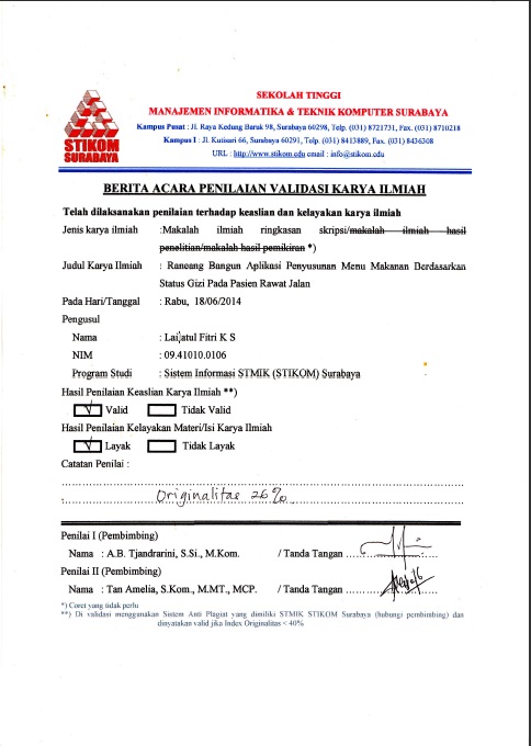 Based on the issues that has been described, then it is needed an application that can make consultating easier for the patient. Thats why it is created a food stuff determination application based on nutrient status for outpatient.