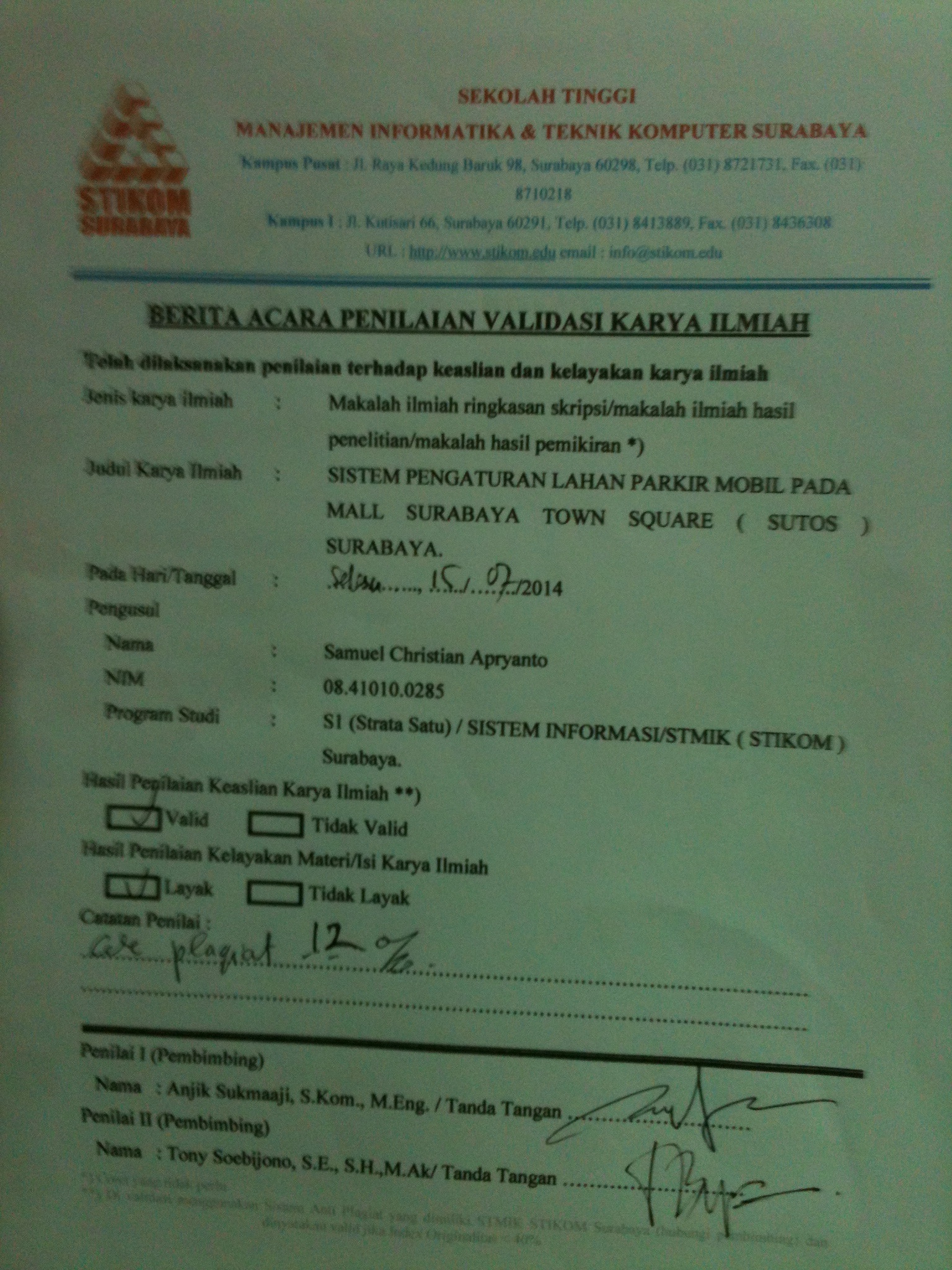 Sistem Pengaturan Lahan Parkir Mobil Pada Mall Surabaya Town Square ( Sutos)