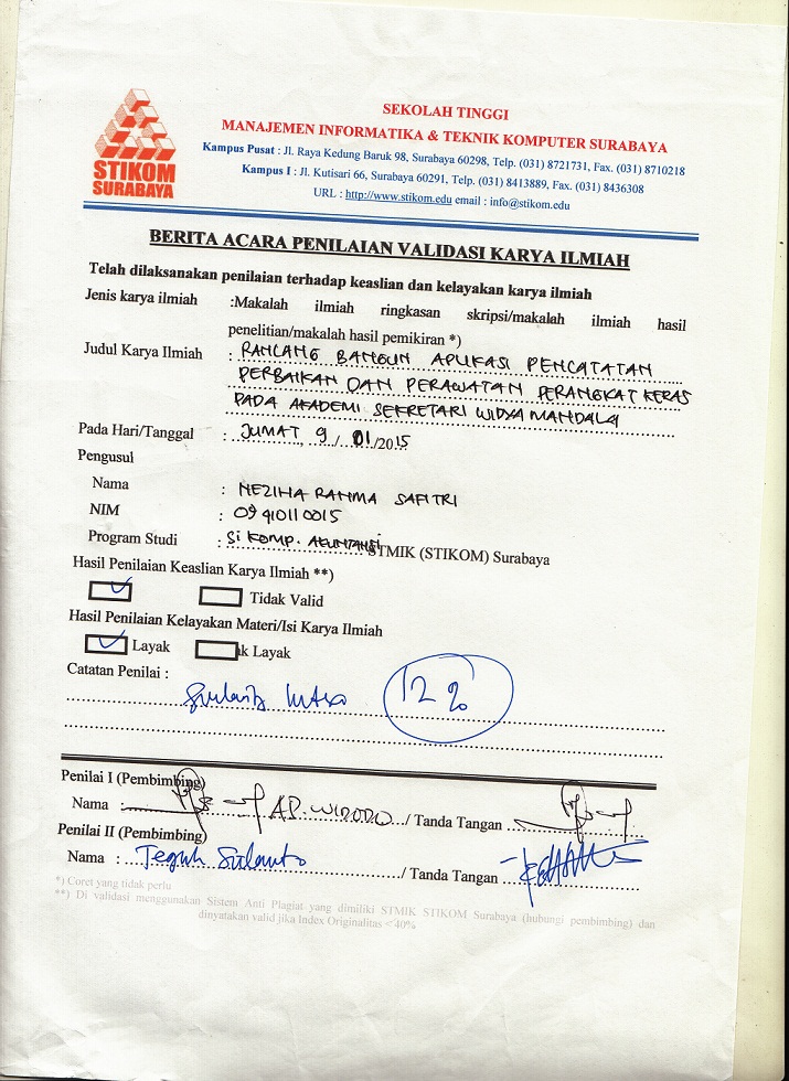 Rancang Bangun Aplikasi Pencatatan Perbaikan Dan Perawatan Perangkat Keras Pada Akademi Sekretari Widya Mandala
