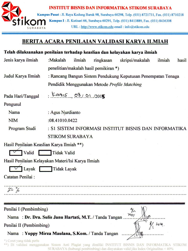 Surabaya City Department of Education is the government agencies engaged in the field of education. Field workforce is part of the Department of Education Surabaya handling and placement needs of educators and non-educators to all public schools in the city of Surabaya. The main constraints faced by the Surabaya City Department of Education today is the process of placing an uneven educators based on the subjects required by each school.These constraints lead to uneven educators, resulting in accumulation of educators in some schools. To overcome these obstacles, the required application of Decision Support System Design Placement Educator Profile Matching Method Using. Selection of profile matching method because the method has been shown to result in recommendations for placement in Biereun PTT.