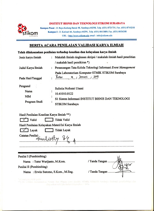 Perancangan Tata Kelola Teknologi Informasi Event Management Pada Laboratorium Komputer STMIK STIKOM Surabaya