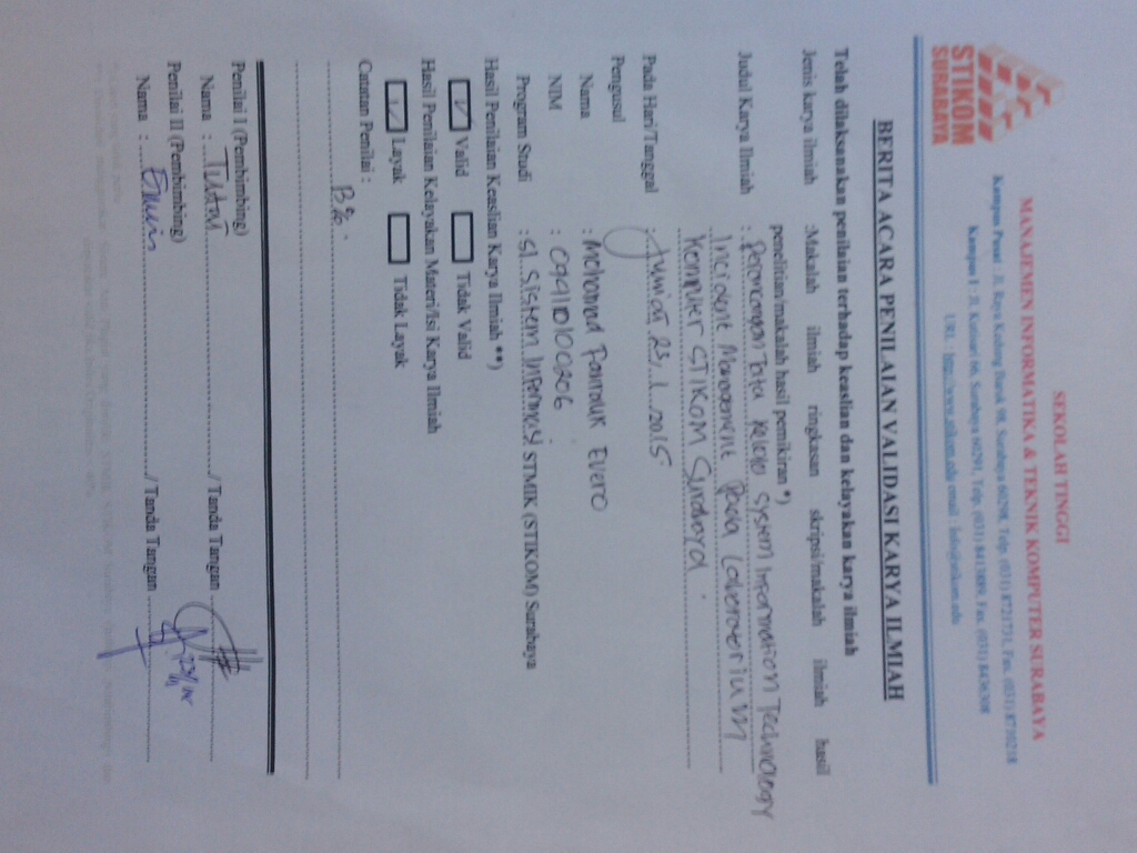 Abstract: STIKOM surabaya are the institutions that moves that puts forward in the fields of information and technology education. This is proven by the facilities and infrastructure that education be able to support the entire process. One of them is computer laboratories (labkom) that are located on the floor blue of stikom six buildings of surabaya. Labkom ever happened incident power lines fell, the incident had an impact on server down, and all the activity of going on labkom come to rest and wait for the recovery of server. The handling of the incident is now only management knowledge based server. Â Server added management if there is an incident recording and the provisin of this was not conducted the status of resolution, so if the incident happen then have to wait staff who know the improvement of the incident. The incident happened chronicled in detail should be complete by the time the events of server management. Based on the problems that occur on labkom currently, then in this research done making service sti procedure, namely standart operation procedure, work instructions, and work of a record using incident management in service operation - information technology infrastructure library ( ITIL ) v3