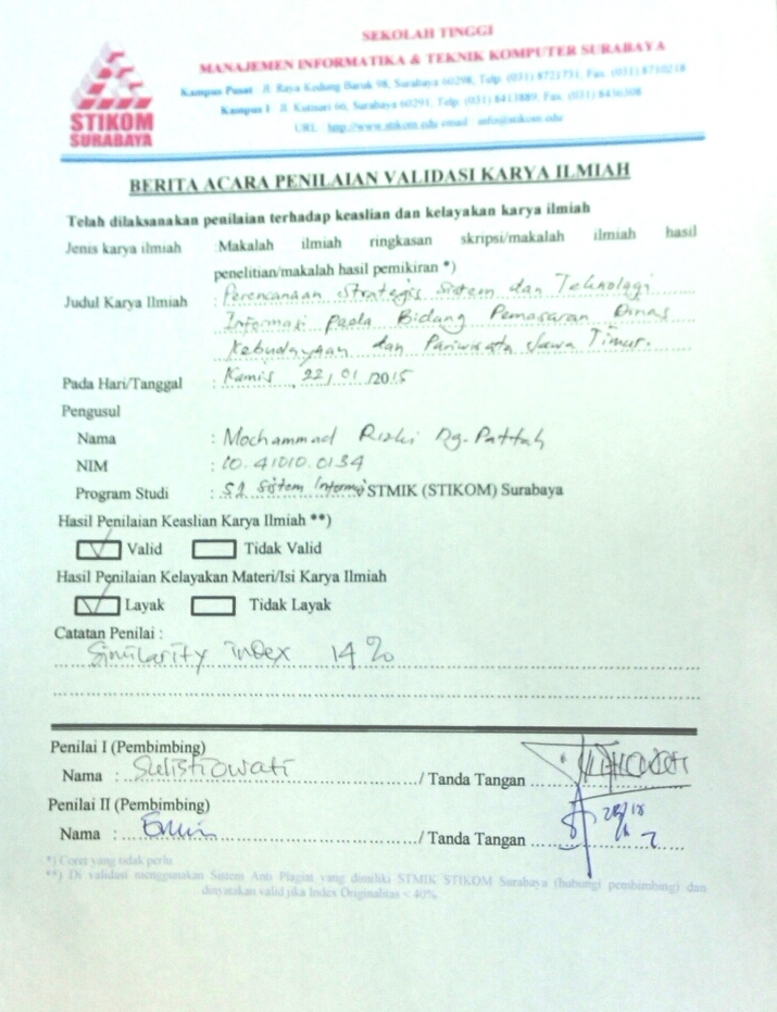 PERENCANAAN STRATEGIS SISTEM DAN TEKNOLOGI INFORMASI PADA BIDANG PEMASARAN DINAS KEBUDAYAAN DAN PARIWISATA JAWA TIMUR