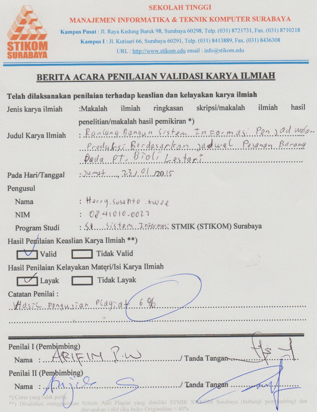 Rancang Bangun Sistem Informasi Penjadwalan Produksi Berdasarkan Jadwal Pesanan Barang Pada PT. Bioli Lestari