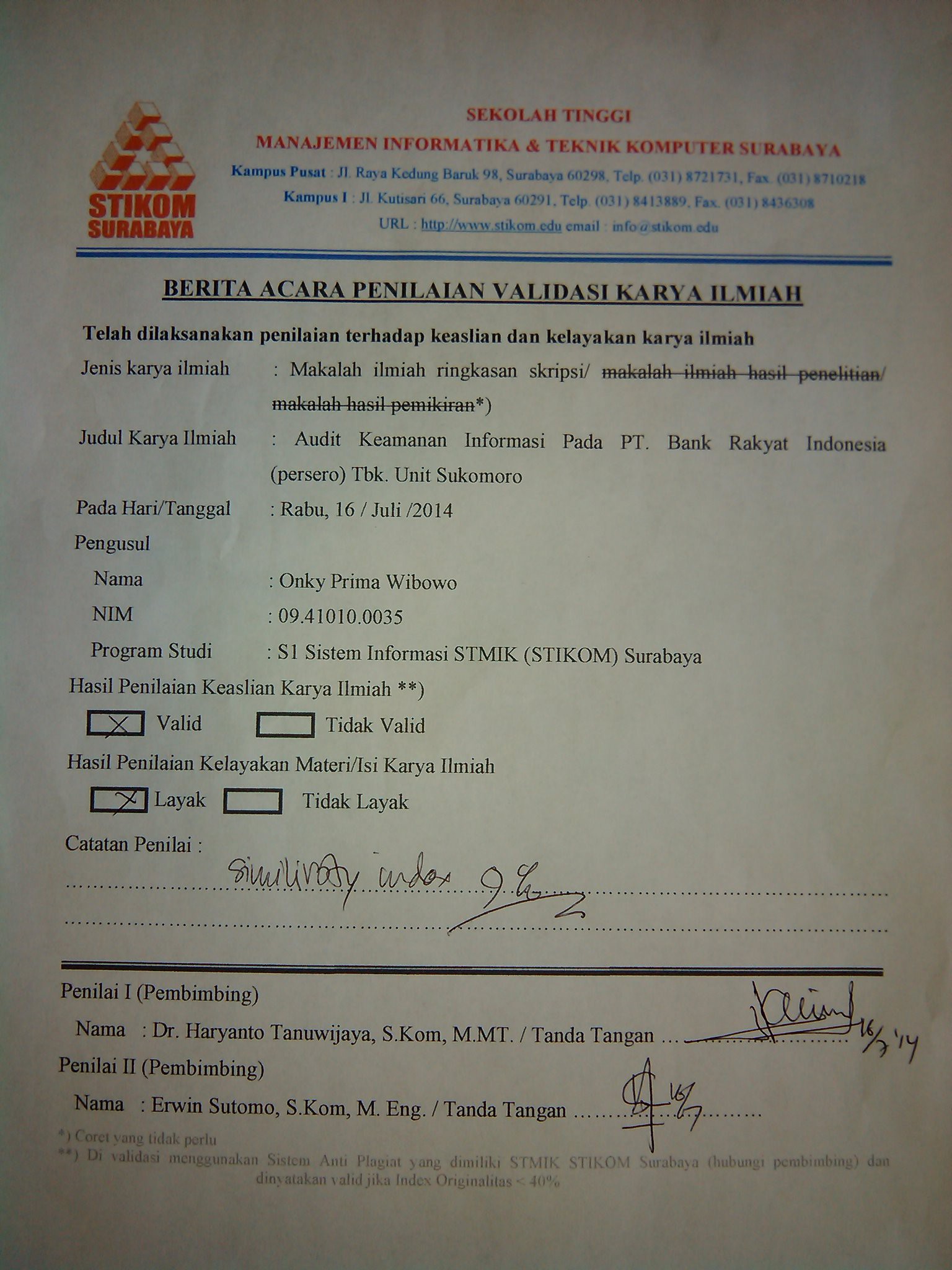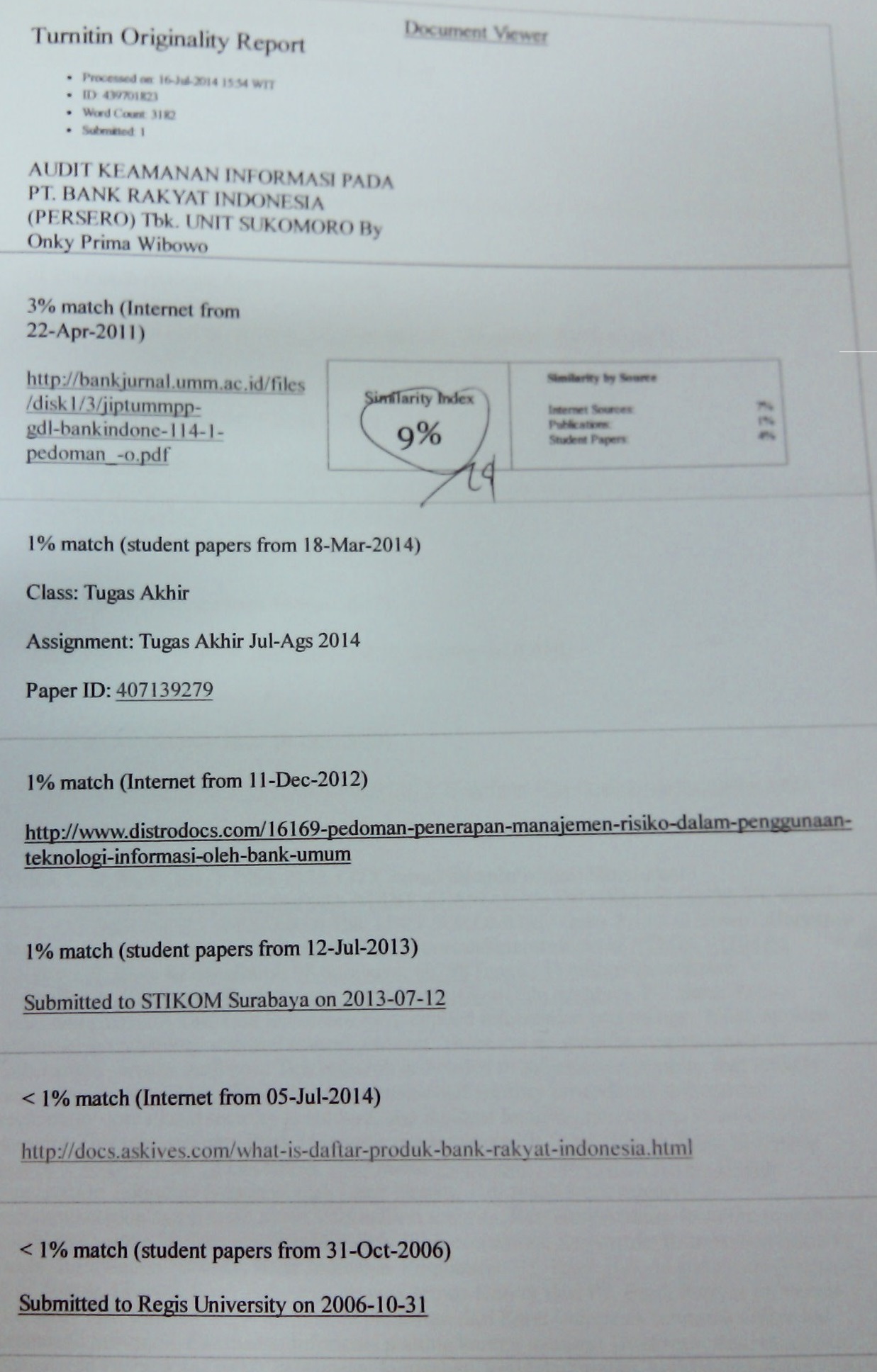 Audit Keamanan Informasi Pada PT. Bank Rakyat Indonesia (Persero) Tbk. Unit Sukomoro