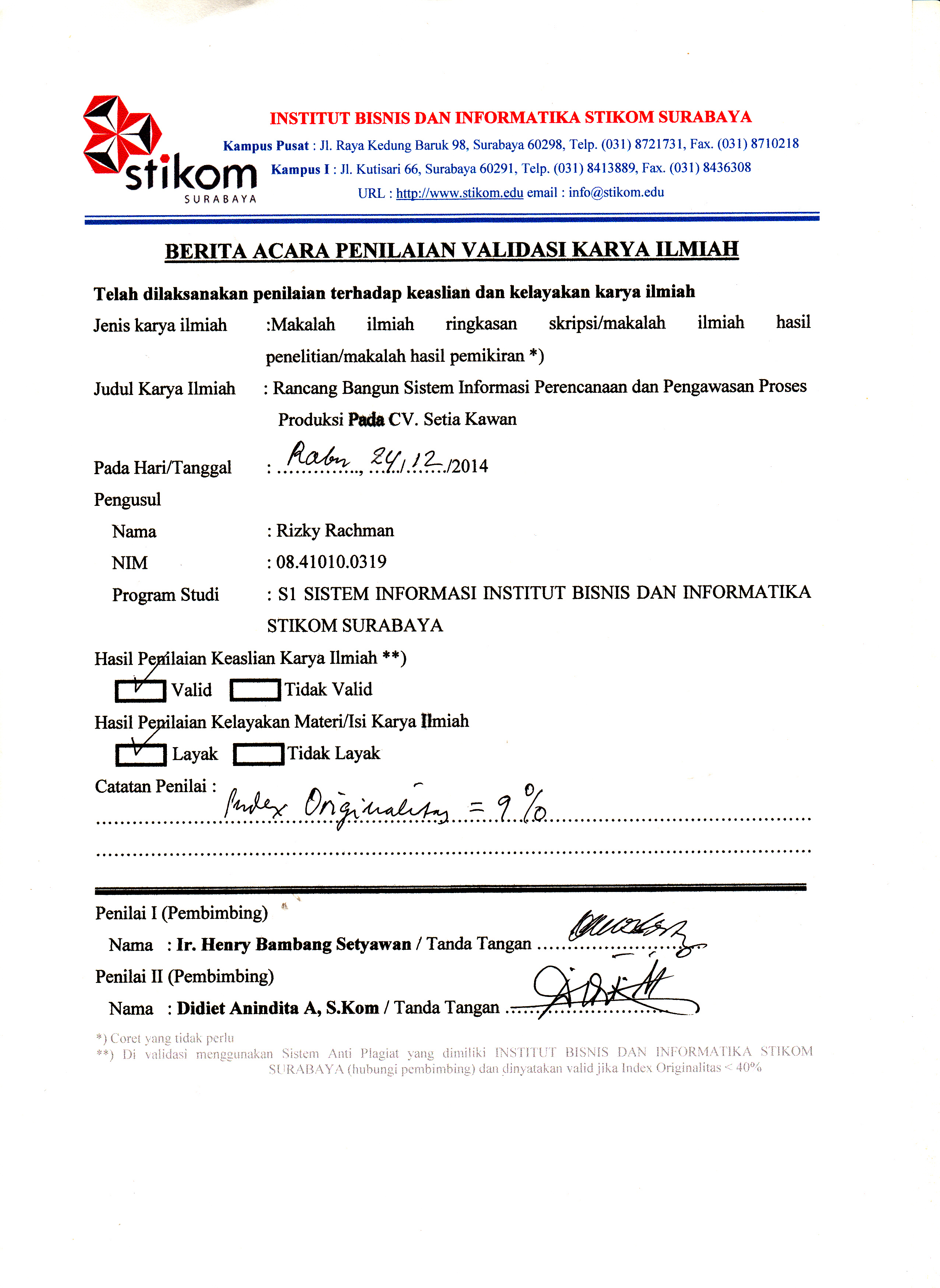 Rancang Bangun Sistem Informasi Perencanaan Dan Pengawasan Proses Produksi Pada CV. Setia Kawan