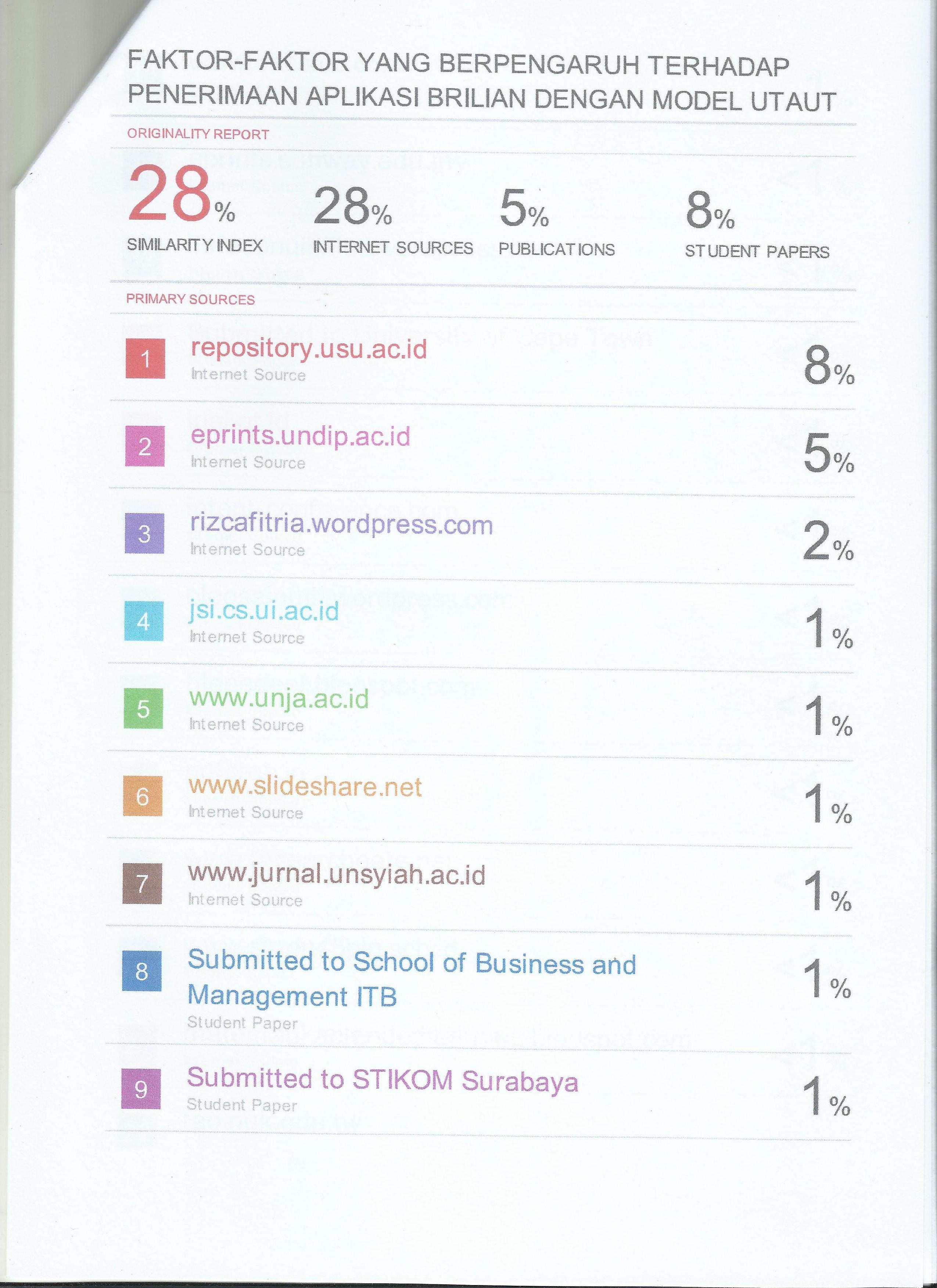 Faktor-Faktor Yang Berpengaruh Terhadap Penerimaan Aplikasi Brilian Dengan Model Utaut