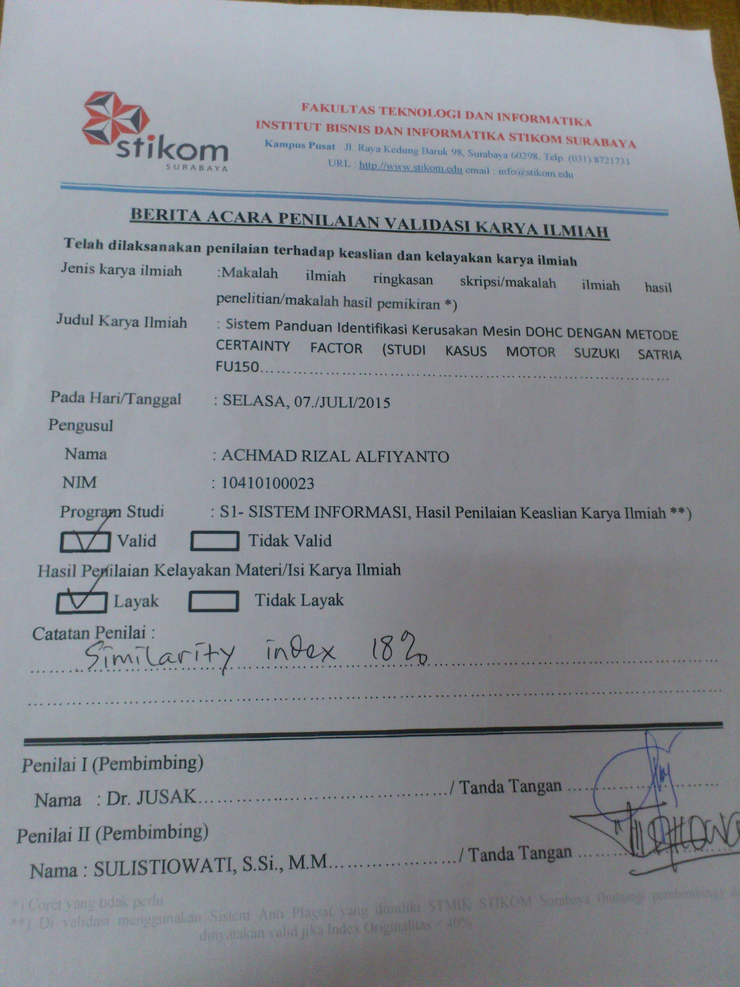Sistem Panduan Identifikasi Kerusakan Mesin DOHC dengan Metode Certainty Factor (Studi Kasus Motor Suzuki Satria fu150)
