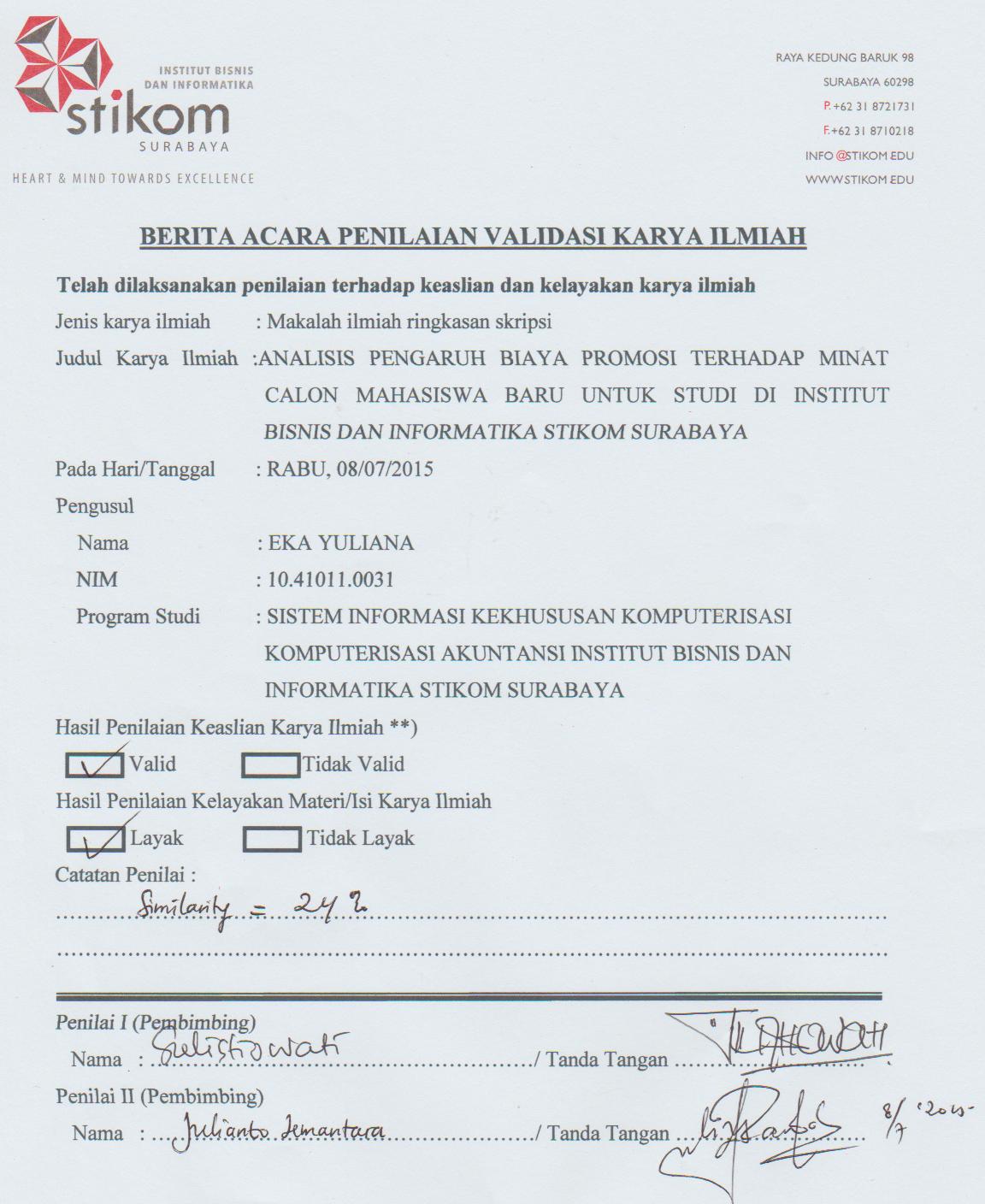 Analisis Pengaruh Biaya Promosi Terhadap Minat Calon Mahasiswa Untuk Studi Di Institut Bisnis Dan Informatika Stikom Surabaya