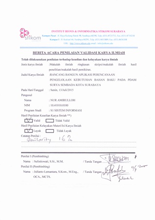RANCANG BANGUN APLIKASI PERENCANAAN PENGELOLAAN KEBUTUHAN BAHAN BAKU PADA PDAM SURYA SEMBADA KOTA SURABAYA