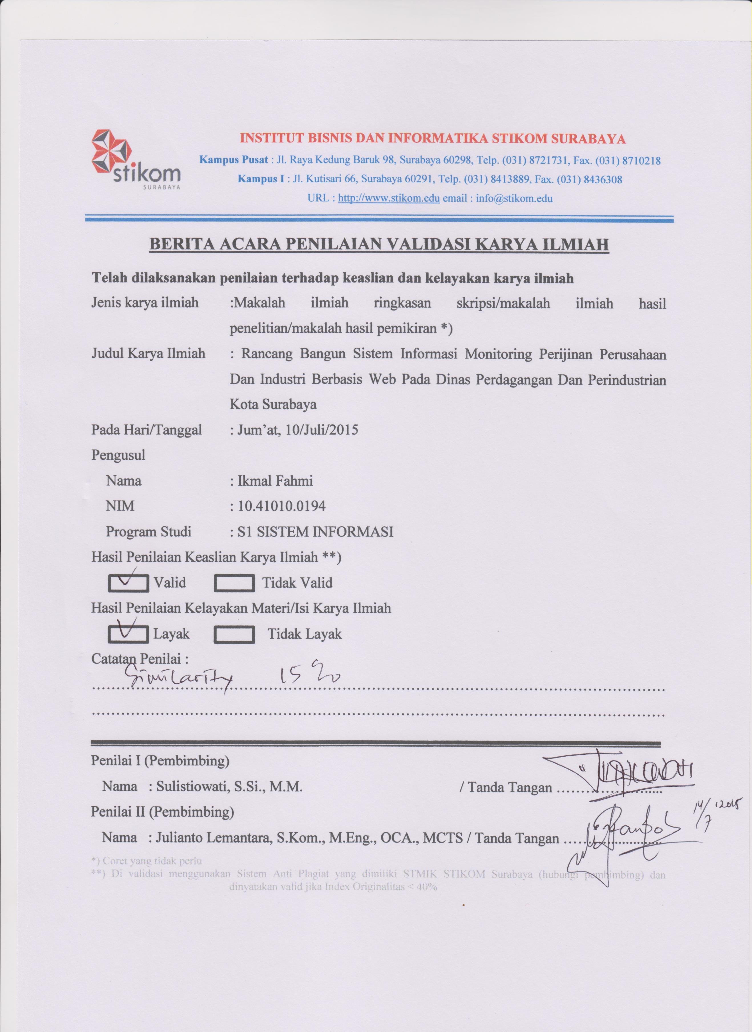 RANCANG BANGUN SISTEM INFORMASI MONITORING PERIJINAN PERUSAHAAN DAN INDUSTRI BERBASIS WEB PADA DINAS PERDAGANGAN DAN PERINDUSTRIAN KOTA SURABAYA