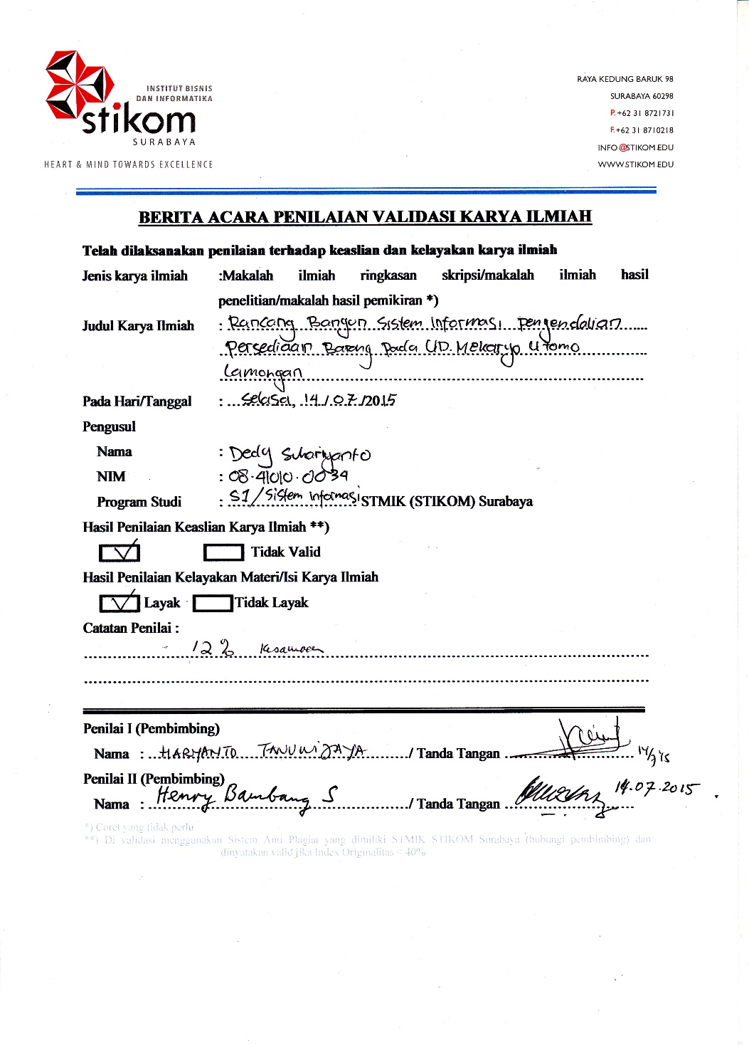 Rancang Bangun Sistem Informasi Pengendalian Persediaan Barang Pada UD. Mekaryo Utomo Lamongan