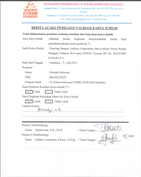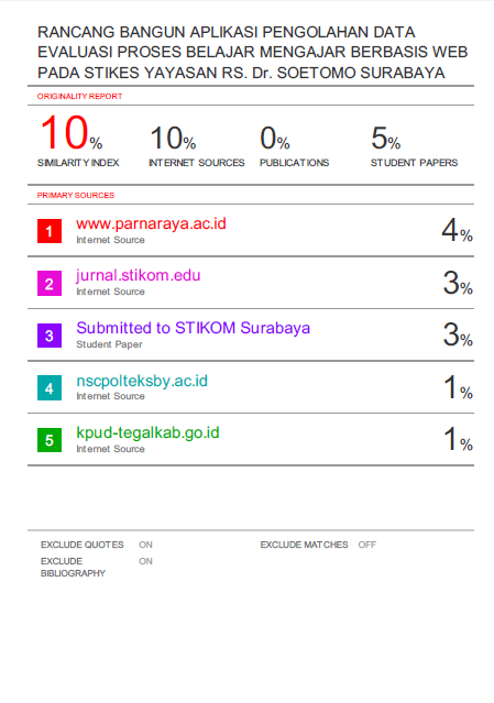 Rancang Bangun Aplikasi Pengolahan Data Evaluasi Proses Belajar Mengajar berbasis Web pada STIKES Yayasan RS. Dr. SOETOMO SURABAYA.