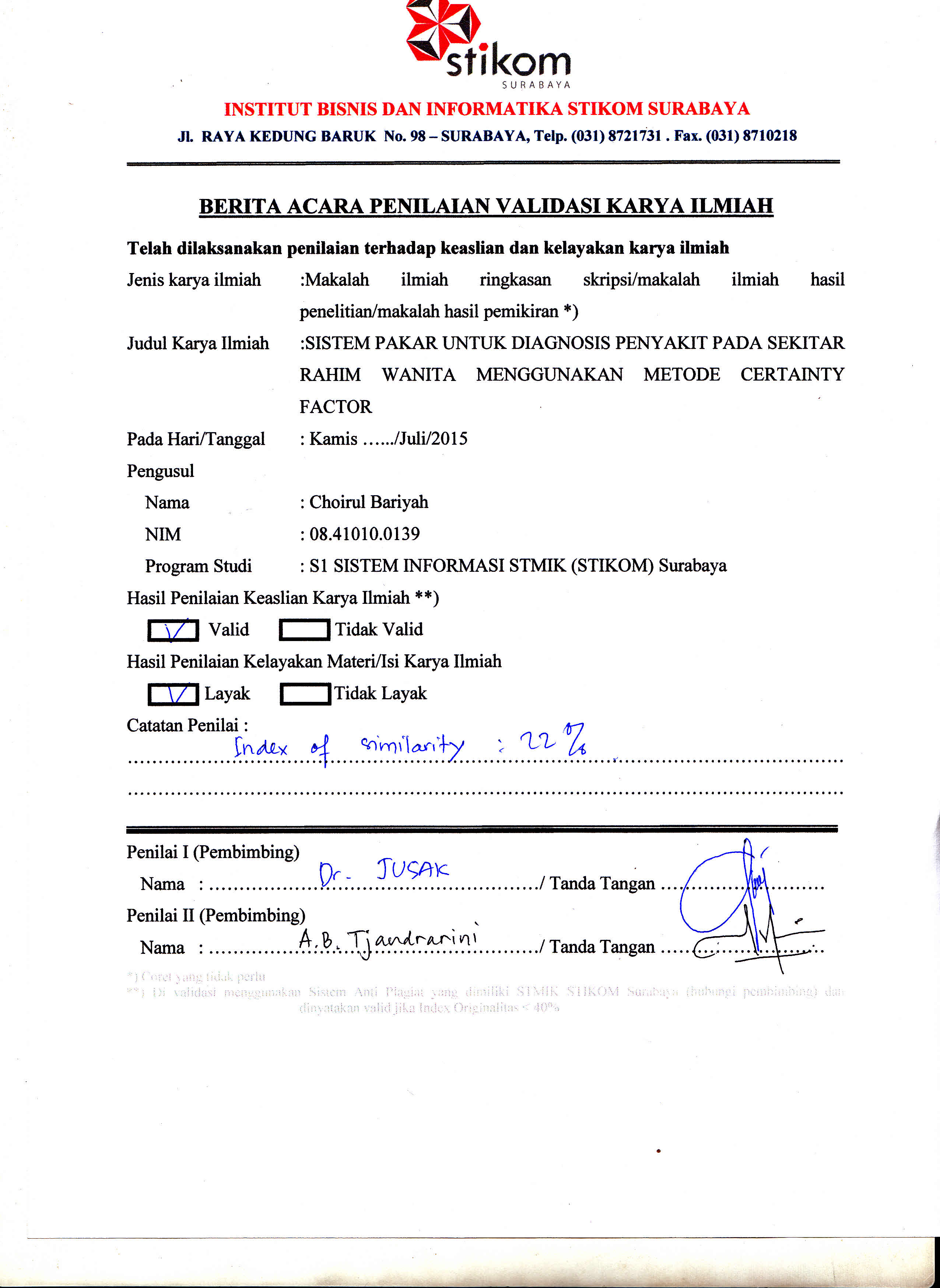 Rancang Bangun Sistem Pakar Diagnosis Penyakit Pada Sekitar Rahim Wanita