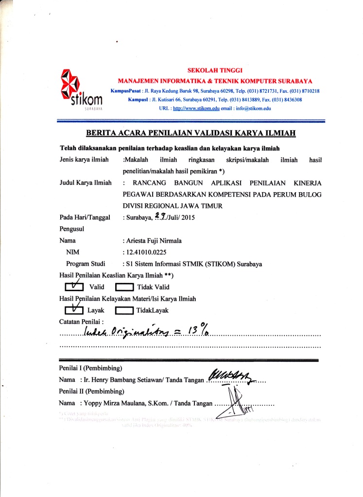 Rancang Bangun Aplikasi Penilaian Kinerja Pegawai Berdasarkan Kompetensi Pada Perum Bulog Divisi Regional Jawa Timur